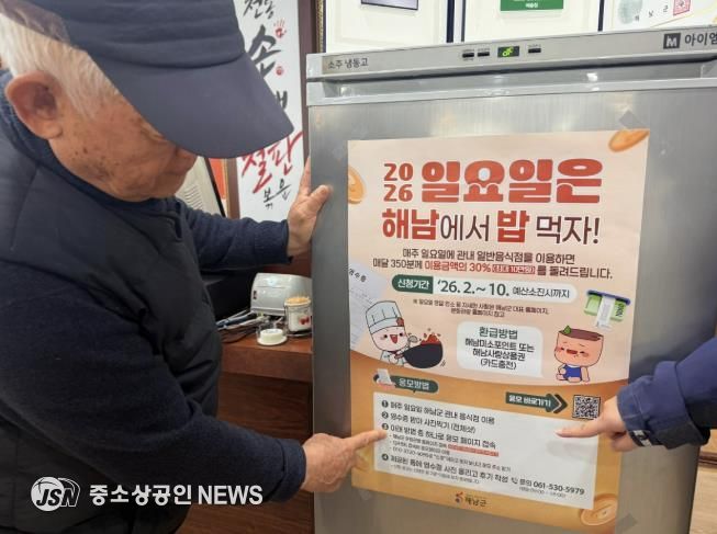 한편 해남군은 이번 사업의 성공적인 안착을 위해 관내 일요일 영업 음식점 업주들의 적극적인 협조를 요청했다. 군 관계자는“식당을 찾는 손님들이 이 혜택을 놓치지 않도록 계산대나 식탁에 홍보물을 비치하는 등 적극적인 안내를 부탁드린다”며, “업주분들의 친절한 서비스와 홍보가 더해진다면 일요일 외식 문화가 정착되어 침체된 골목상권이 다시 살아나는 계기가 될 것”이라고 전했다.