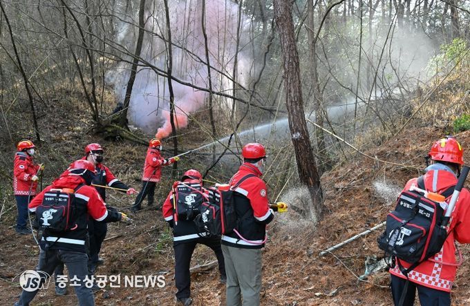 이번 훈련은 서구청, 산림재난대응단, 서부소방서 등 관계기관 50여 명이 참여했으며 산불진화차와 소방차, 등짐펌프 등 장비를 동원해 산불 초동 대응부터 진화 완료까지 전 과정을 실제 상황처럼 운영했다. 훈련은 산불 피해 신고 접수부터 신속한 초동 진화, 산불현장 통합지휘본부 설치‧운영, 주민대피를 위한 상황판단회의 개최, 언론 브리핑에 이르기까지 단계별 대응 절차를 체계적으로 점검하는 방식으로 진행됐다.