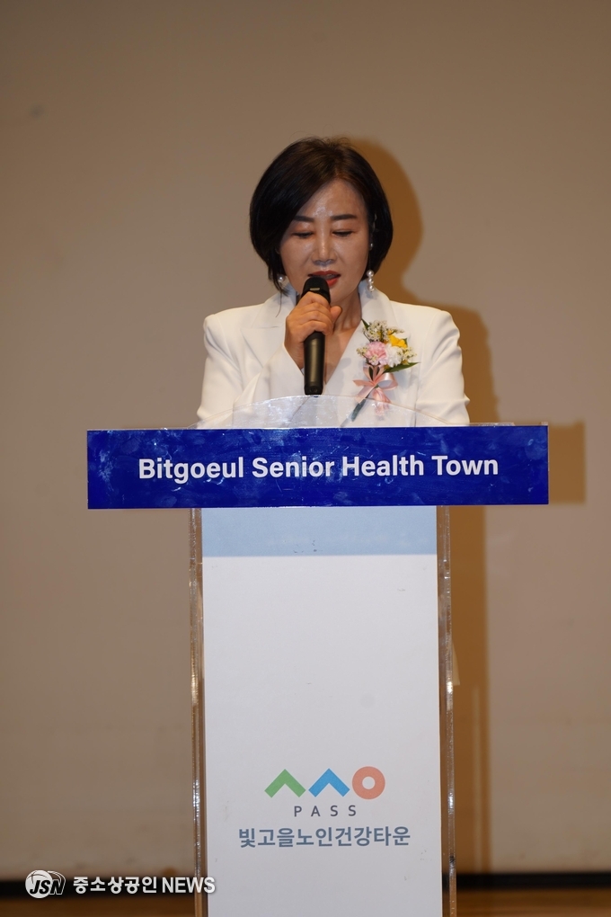 [김옥주 사)한국가요예술원 광주지회장이 취임사을 하고 있다] (사진=중소상공인뉴스)