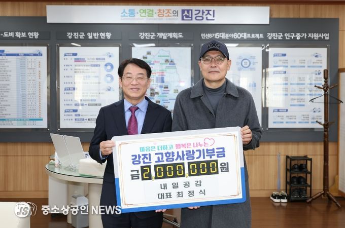 최정식 내일공감 대표가 지역 발전을 염원하는 따뜻한 마음을 담아 강진 고향사랑기부제에 동참하며 나눔 문화 확산에 앞장섰다.