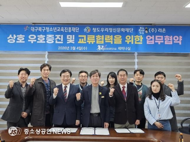 대구북구청소년교육진흥재단과 (재)청도우리정신 문화재단은 2026년 3월 4일 13시 지역 청소년 교류협력 활성화를 위한 상호업무협약(MOU)을 체결했다고 밝혔다.