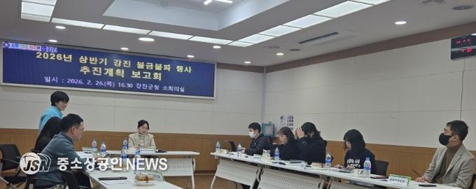 강진군은 지난 2월 26일 군청 소회의실에서 행사 련부서 회의를 열었다.