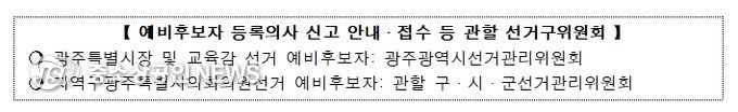 중앙선관위는 3월 5일 '전남광주통합특별시 설치를 위한 특별법'이 공포됨에 따라, 전남, 광주의 시·도지사(교육감 포함) 및 지역구시·도의회의원 선거의 예비후보자가 그 신분을 유지하려면 3월 16일까지 예비후보자 등록의사를 관할 선거구위원회에 서면으로 신고해야 한다고 밝혔다.