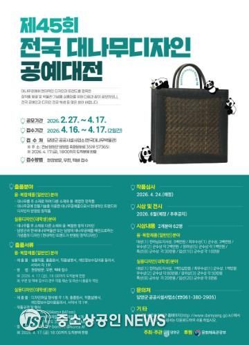 접수는 오는 4월 16일부터 17일까지 이틀간 한국대나무박물관에서 받으며, 시상은 총 62명을 선정해 상장과 함께 총 2,860만 원의 상금을 수여할 계획이다.