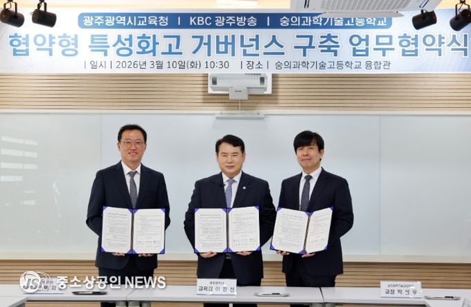 광주시교육청은 10일 숭의과학기술고등학교에서 KBC광주방송, 숭의과학기술고등학교와 함께 ‘협약형 특성화고 거버넌스 구축 업무협약’을 체결했다.