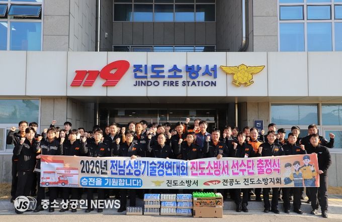특히 진도소방서는 대회 준비에 힘쓰고 있는 출전 대원들에게 격려품을 전달하며 그동안의 노고를 격려하고, 안전한 대회 참가와 좋은 성과를 당부했다.