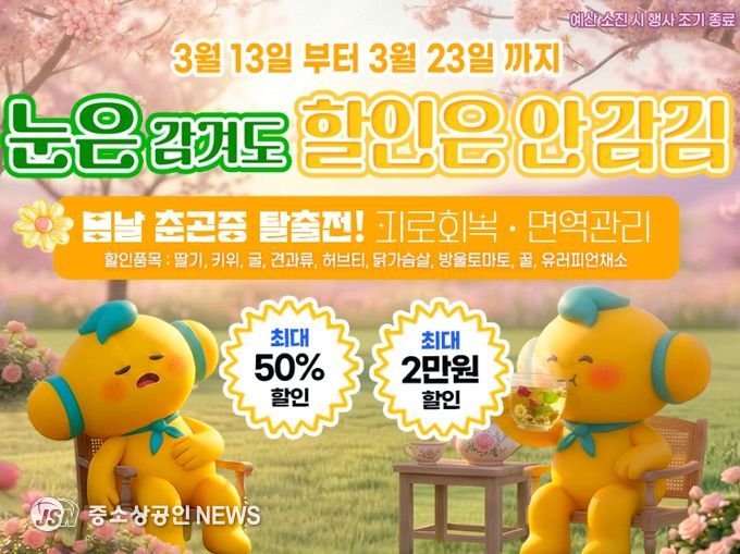 이번 기획전은 따뜻한 날씨와 함께 찾아오는 춘곤증으로 쉽게 피로해지는 시기를 맞아 피로 회복과 면역 관리에 도움을 주는 건강 먹거리를 합리적인 가격에 선보이기 위해 마련됐다.