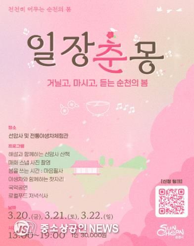 순천시는 봄꽃이 피어나는 시기에 맞춰, 천년 고찰의 정취 속에서 휴식과 사색을 즐기는 프리미엄 감성 프로그램 ‘일장춘몽(一場春夢)’을 운영하고 참가자를 모집한다고 밝혔다.