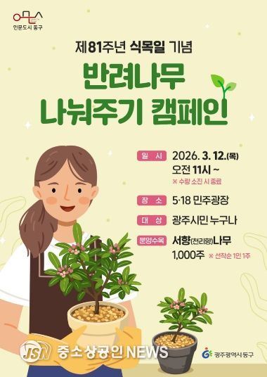 광주 동구는 제81회 식목일을 앞두고 주민들이 직접 나무를 가꾸며 생활 속 환경보호를 실천할 수 있도록 오는 12일 5·18민주광장에서 ‘반려나무 나눠주기’ 캠페인을 개최한다고 밝혔다.