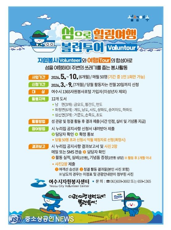 여수시가 2026여수세계섬박람회를 앞두고 섬 관광과 자원봉사를 결합한 이색 프로그램인 ‘섬섬여수 볼런투어(Voluntour)’를 오는 5월부터 본격 운영한다고 밝혔다.