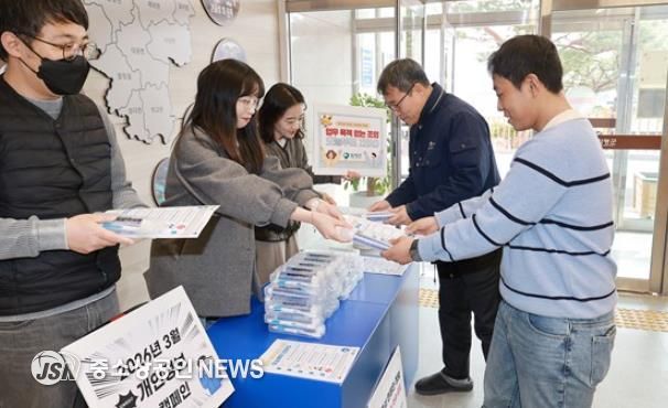 이날 담당 부서는 ‘개인정보 보호 실천! 정보유출 예방 실천!’ 구호와 함께 직원들에게 유인물과 홍보 물품을 배부하며 개인정보 보호 실천을 당부했다.