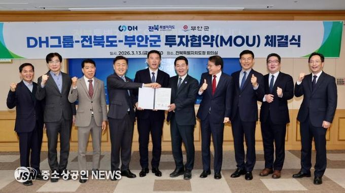 부안군은 전북특별자치도와 함께 13일 전북특별자치도청에서 ㈜DH그룹과 1500억원 규모의 부안 제3농공단지 투자협약(MOU)을 체결했다고 밝혔다.