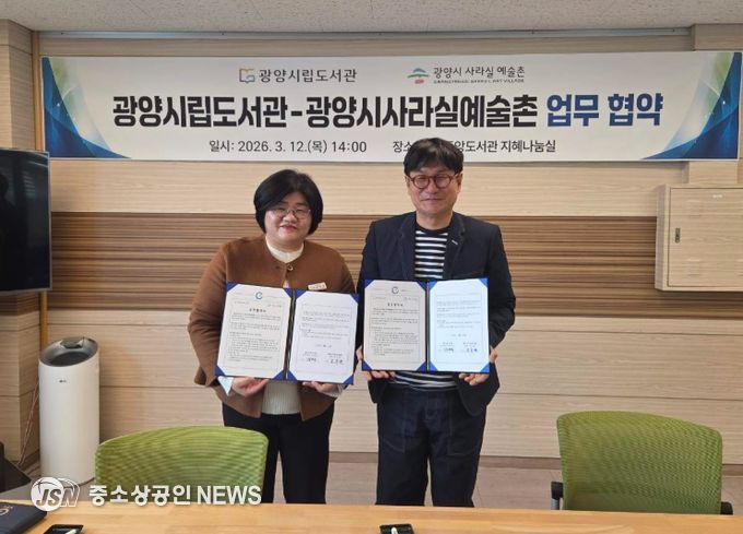 광양시립도서관과 광양시사라실예술촌은 지난 3월 12일 오후 2시 광양중앙도서관에서 시민의 문화예술 향유 기회를 넓히고 지역 문화기관 간 협력 기반을 강화하기 위한 업무협약을 체결했다.