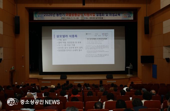 전남 곡성군은 13일 곡성문화센터 동악아트홀에서 농번기 마을 공동급식을 추진하는 136개 마을을 대상으로 마을대표, 조리원, 반찬배달업체 등 200여 명이 참석한 가운데 2026년도 농번기 마을공동급식 지원사업 추진 지침 설명회 및 위생교육을 실시했다고 밝혔다.