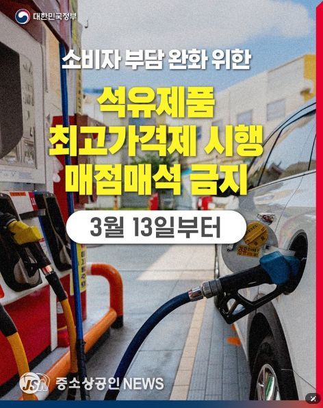 소비자 부담 완화 위한 석유제품 최고가격제 시행 매점매석 금지
