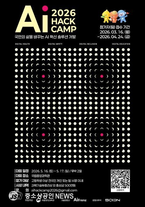 과학기술정보통신부 국립중앙과학관은 ‘국민의 삶을 바꾸는 인공지능 혁신 해결책(솔루션) 개발’을 주제로 5월 16일부터 17일(까지 무박 2일간 국립중앙과학관 미래 기술관에서'AI Hack Camp 2026'을 개최한다고 밝혔다.