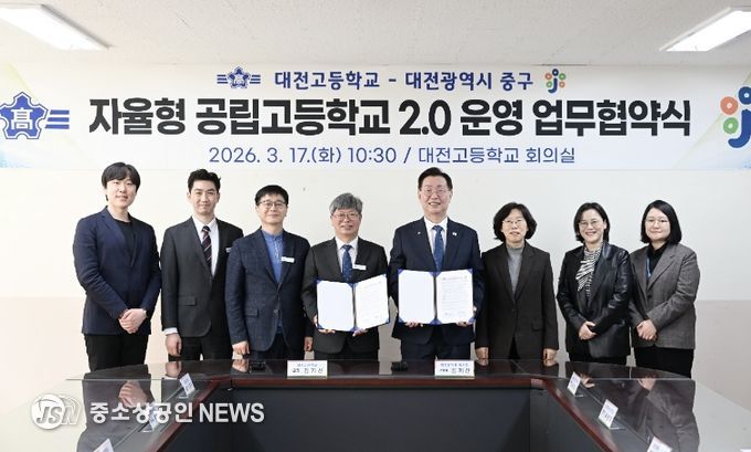 대전 중구는 17일 대전고등학교(교장 김기신)와 지역교육 기반 강화를 위한 상호교류 협력 협약을 체결하고, 지역과 학교가 유기적으로 소통하며 함께 성장하는 교육공동체 구축에 나섰다고 밝혔다.