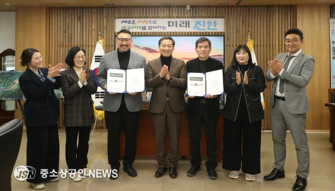 18일 진안군청 군수실에서 열린 계약식에는 강광배 ㈜케이샷/Ciao Asia 대표와 김정배 사업단장, 전춘성 군수, 한소영 과장이 함께했다.