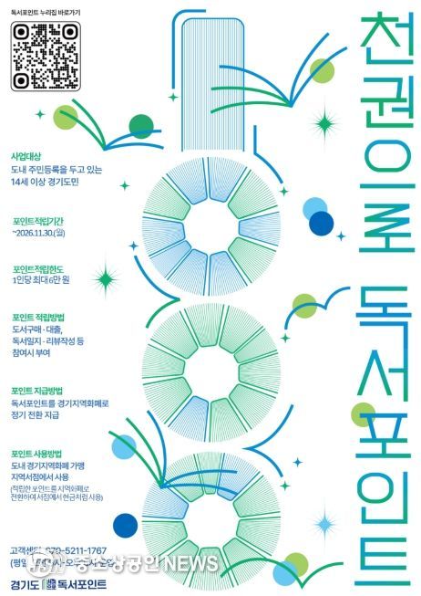 윤명희 경기도서관장은 “책을 읽는 경험이 생활 속 혜택으로 이어지도록 경기도 대표 독서문화 프로젝트인 ‘천권으로’와 연계해 독서포인트 사업을 설계했다”면서 “경기도민이 책과 함께 걷는 평생 독서의 길을 함께 하길 바란다”고 말했다.