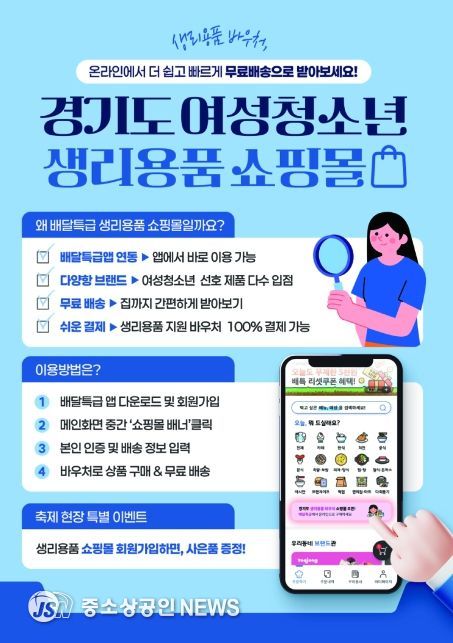 경기도 여성청소년 생리용품 보편지원 사업은 11~18세 여성청소년에게 지역화폐(생리용품 바우처)를 지원하는 정책이다. 경기도주식회사는 비대면 구매를 선호하는 청소년의 소비 행태를 반영해 전용 쇼핑몰을 운영 중이다. 쇼핑몰을 통해 ▲직접 방문의 번거로움 해소 ▲대면 구매 시 발생하는 심리적 불편 완화 ▲무료 배송 등을 통해 정책 체감도를 높이고 있다.