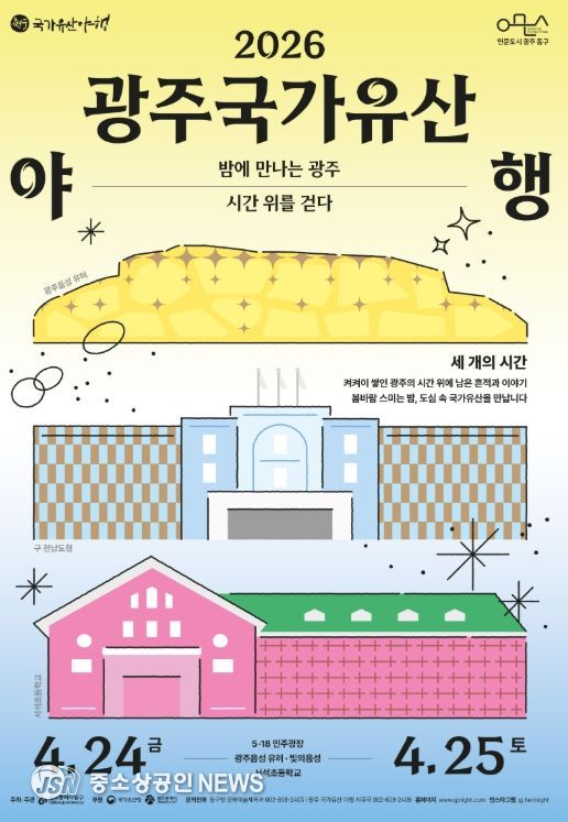 한편 2026 광주 국가유산 야행은 4월 24~25일 이틀간 5·18민주광장, 광주읍성유허, 서석초등학교 등 지역 국가유산 일원에서 개최한다.