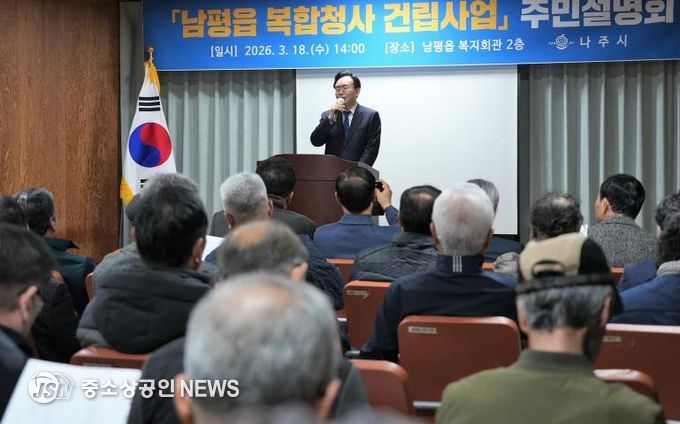 나주시는 지난 18일 남평읍 복지회관에서 ‘남평읍 복합청사 건립사업’ 주민설명회를 개최하고 사업 추진 경과와 향후 계획을 공유했다고 밝혔다.