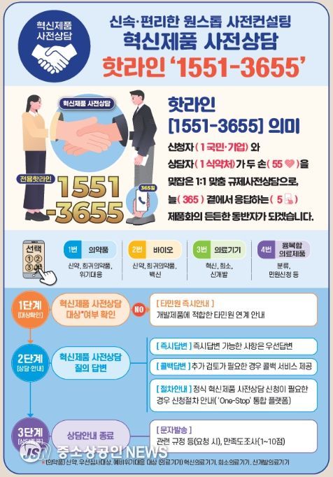 혁신제품 개발기업과 개발자가 혁신제품 사전상담 핫라인을 통해 의약품, 바이오의약품, 의료기기, 융복합의료제품 등 상담분야를 선택하면 전문 상담자와 신속하게 연결되도록 하여 복잡한 ARS 절차를 최소화해 사용자의 이용 편의성을 높였다. 핫라인 상담 시간은 평일 오전 9시부터 오후 17:30까지이다.
