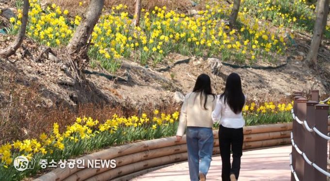 진도군 의신면 사천리에 있는 산림욕장에는 2022년부터 조성한 생태탐방로 부지에 수선화와 애기동백이 만개하며 봄을 알리고 있다.