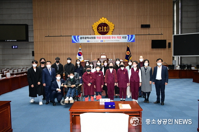광주광역시의회(의장 정무창)는 12월 9일(금), 시의회 본회의장에서 ‘2022년도 학생 모의의회 우수 학생 시상식’을 개최했다고 밝혔다.