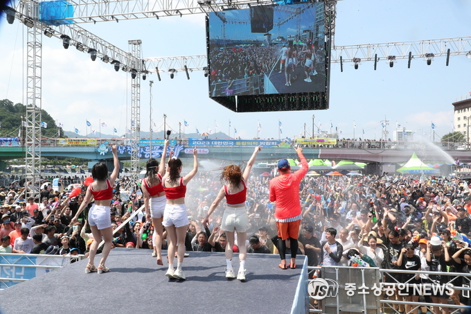 축제 핵심 프로그램인 지상 최대의 물싸움도 장흥교 아래에서 열려 사방에서 날아오는 물대포, 물풍선, 물총이 한여름 더위를 식혔다.