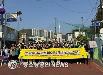 이날 여수시 교통안전협의체, 서초등학교 교직원, 학생 등 100여 명이 참여한 가운데 ‘어린이보호구역 30km 속도 준수’, ‘우회전 시 일시 정지’, ‘음주·과속·난폭운전 금지’ 등이 적힌 팻말과 현수막을 활용해 교통안전 수칙을 홍보했다.