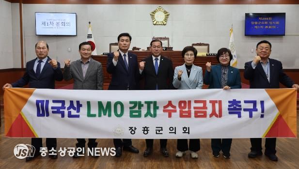 장흥군의회는 지난 4월 22일 제298회 장흥군의회 임시회 제1차 본회의에서 왕윤채 의원이 대표 발의한‘미국산 LMO 감자 수입 금지’촉구 건의안을 만장일치로 채택했다.