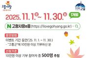 고흥군은 유자향이 가득한 11월을 맞아 고향사랑기부제 참여자에게 감사의 마음을 전하기 위해 ‘고흥애(愛) 연말정산 이벤트’를 11월 30일까지 운영한다고 밝혔다. 이번 이벤트는 연말정산 시즌을 앞두고 기부자들의 관심이 높아지는 시기에 맞춰 마련된 것으로, 기간 내 고흥군에 10만 원 이상 기부한 참여자 중 500명을 무작위로 추첨해 다이소 모바일 상품권(1만 원권)을 증정한다. 군은 이번 행사를 통해 연말정산 시 세액공제 혜택(10만 원 전액, 초과분 16.5%)을 다시 한번 알리고, 고흥의 대표 농수특산물 답례품을 함께 홍보할 계획이다. 답례품으로는 ▲2025년산 햅쌀 ▲향기로운 유자 제품 ▲김 ▲고흥 한우 ▲나로도 삼치회 등 청정 고흥을 대표하는 품목이 인기를 끌고 있다. 특히 11월에는 고흥유자축제(11.6.~9.)와 연계한 현장 홍보를 강화해 향우와 관광객을 대상으로 기부 참여를 독려할 예정이다. 군 행정과 관계자는 “고흥의 유자향처럼 따뜻한 마음이 전국으로 퍼져나가길 바란다”며 “기부금은 아동·청소년 복지, 문화·의료 인프라 확충 등 군민의 삶의 질 향상에 소중히 사용하겠다”고
