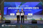 진도군은 지난 11월 5일에 전라남도교육청과 ‘전라남도 교육자치협력지구 운영 업무협약’을 체결했다고 밝혔다. 이번 협약식은 진도교육지원청에서 주최하는 ‘2025 보배섬 진도 글로컬 교육축전’이 열리고 있는 진도실내체육관에서 진행됐으며, 김희수 진도군수, 김대중 전라남도교육감, 박금례 진도군의회의장과 군의원, 전라남도교육청과 진도교육지원청 관계자, 학부모, 학생들이 참석했다. 이번 협약은 지역사회와 학교가 함께 성장하는 지속 가능한 교육생태계를 구축하는 것을 목표로 한다. 업무협약의 주요 내용은 ▲교육 발전과 지역교육 활성화를 위한 상호 협력 ▲교육자치협력지구 사업의 행‧재정적 지원 ▲지역 인재 육성 프로그램 공동 추진 등으로 협약은 2026년부터 2029년까지 4년 동안 유지된다. 김희수 진도군수는 “민선 8기 군정 방침인 ‘인재를 키우는 교육’을 실현하기 위해 인재육성 장학사업과 교육경비 예산을 대폭 확대하고 있다”라며, “앞으로도 교육청과 협력해 학생들이 마음껏 꿈을 펼칠 수 있는 교육환경을 조성하겠다”라고 말했다. 이어 “진도는 대몽항쟁과 명량대첩의 역사를 품은 호국의 땅으로, 학