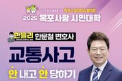 목포시는 오는 11월 11일 오후 2시 목포시민문화체육센터에서 한문철 변호사를 초청해 ‘교통사고 안 내고 안 당하기’를 주제로 특강을 연다. 이번 강연은 목포시와 국립목포대학교가 공동 운영하는 '목포사랑 시민대학' 강좌의 일환으로 마련됐다. JTBC ‘한블리(한문철의 블랙박스 리뷰)’로 잘 알려진 한문철 변호사는 교통사고 처리 분야의 대표적인 전문가로, 실제 사고 영상과 판례를 통해 법적 책임 비율, 사고 대처 요령 등 일상에서 도움이 되는 교통법률 정보를 알기 쉽게 전할 예정이다. '목포사랑 시민대학'은 ‘글로컬대학30’과 연계한 관‧학 협력 평생학습 사업으로, 목포시와 국립목포대학교가 함께 추진하고 있다. 상반기 1기 과정에서는 8개 강좌에 145명이 수료했으며, 현재 하반기 2기 과정에는 15개 강좌에 250여 명이 참여하고 있다. 시는 시민의 삶과 배움을 잇는 평생학습 플랫폼으로 발전시켜 나갈 계획이다. 시 관계자는 “이번 강연이 시민들의 교통안전 의식을 높이는 계기가 되길 바라며, 앞으로도 목포사랑 시민대학을 통해 보다 다양하고 유익한 평생교육 프로그램을 제공하겠다