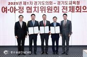 경기도의회와 경기도교육청은 5일 ‘2025년도 제1차 여야정협치위원회 전체 회의’를 열고 내년도 본예산에 경기교육의 발전과 미래를 위한 협치예산을 공동 추진하기로 합의했다. 김진경(더민주·시흥3) 의장과 임태희 도교육감, 더불어민주당 최종현(수원7) 대표의원, 국민의힘 백현종(구리1) 대표의원, 김진수 제1부교육감 등은 이날 의회 예담채에서 첫 여야정협치위원회 전체 회의를 열었다. 도의회·도교육청 여야정협치위원회는 ▲현장 중심의 학교 운영 강화, ▲교육행정 접근 체계 개선, ▲미래 교육을 이끄는 학습 전환, ▲안전하고 효율적인 교육환경 조성, ▲지역협력 기반의 맞춤형 교육 확대 등 5대 분야 2,000억원 규모의 협치예산을 공동 추진하기로 합의했다. 양 기관은 여야정 협치의 정신 아래 학생이 행복하고 교사가 존중받으며, 지역이 함께 성장하는 경기미래교육을 위해 협치예산의 효율적인 집행과 함께 지속적인 협력을 이어가기로 했다. 김진경 의장은 “경기도 학생들을 위한 교육 현안만큼은 여와 야, 의회와 집행부가 따로 있을 수 없다”라며 “아이들의 더 나은 미래를 위해 책임을 함께 짊어지고, 결과 또한 함께