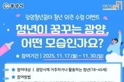 광양청년꿈터가 11월 17일부터 11월 30일까지 ‘청년이 꿈꾸는 광양, 어떤 모습인가요?’를 주제로 청년 의견 수렴 이벤트를 진행한다. 이번 이벤트는 광양시 청년들의 다양한 목소리를 듣고, 청년이 바라는 광양의 미래상을 향후 청년정책과 프로그램 운영에 반영하기 위해 마련됐다. 참여 대상은 광양시에 거주하거나 광양시에서 활동하고 있는 18세~45세 이하 청년이다. 참여 방법은 광양청년꿈터 공식 SNS(네이버 블로그·인스타그램) 중 한 곳을 팔로우한 뒤, ‘청년이 바라는 광양의 모습’을 자유롭게 작성해 팔로우 인증과 함께 네이버폼으로 제출하면 된다. 이벤트 참여자 중 40명을 추첨해 치킨 기프티콘을 제공할 예정이며, 당첨자는 12월 5일 광양청년꿈터 누리집을 통해 발표된다. 상품은 개별 연락을 통해 전달된다. 오영숙 광양청년꿈터 센터장은 “이번 이벤트는 광양청년꿈터에 대한 관심을 높이고, 지역사회와 청년 활동에 대한 주체적 참여를 확대하기 위해 마련한 것”이라며 “청년들이 바라보는 광양의 모습과 그 안에서 꿈꾸는 미래를 직접 듣고, 이를 향후 정책과 프로그램의 소중한 밑거름으