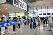 순천시는 2일 순천역 광장에서 추석을 맞아 고향을 방문하는 귀성객과 관광객을 대상으로 환영 행사와 시정 홍보활동을 펼쳤다. 이번 행사는 일류순천시민운동본부, 자생단체, 읍면동 주민 등 500여 명이 함께 참여한 가운데 귀성객 환영 공연과 자원봉사자들의 차나눔으로 고향을 찾은 귀성객들에게 넉넉한 한가위의 정을 전했다. 이날 행사에서는 여수MBC 순천 이전 협약, 코스트코 입점 확정 등 지역의 호재를 알리며, 순천의 3대 경제축(문화·우주·바이오 산업)을 기반으로 ‘치유의 도시 순천’으로 도약하는 미래 비전을 공유하는 계기를 마련했다. 노관규 시장은 “추석을 맞아 고향을 찾은 향우 여러분께서 순천의 변화된 모습을 보며 큰 자부심과 에너지를 얻어가시길 바란다”고 말했다. 한편, 순천시는 연휴 7일 동안 재난·안전, 교통편의, 관광 대책 등 8개 분야의 대시민 서비스 계획을 가동하고 종합상황실(061-749-5459) 운영을 비롯해 비상근무체제를 유지한다.