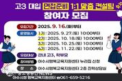여수시가 관내 고3 재학생 등 2026학년도 대입 수험생과 학부모를 대상으로 ‘2026 대입 면접준비 1:1 맞춤 컨설팅’을 운영한다. 이번 컨설팅은 총 200명을 대상으로 하며, ▲9월 27일 ▲10월 18일 ▲10월 25일 ▲11월 22일 총 4회에 걸쳐 여수시행복교육지원센터 진학 상담실에서 진행된다. 2026학년도 수시모집 전형 기간에 맞춰 진행되는 이번 컨설팅에는 서울 등 각지에서 온 전문 컨설턴트가 참여한다. 수험생들은 사전에 제출한 자료를 토대로 1인당 60분간 1:1 맞춤형 면접 지도를 받을 수 있다. 참여를 희망하는 학생은 9월 16일부터 여수시행복교육지원센터 누리집을 통해 신청할 수 있으며, 신청서와 학교생활기록부 최종본을 서류제출 기간 내 이메일로 제출하면 된다. 자세한 사항은 여수시 평생교육과로 문의하면 된다. 시 관계자는 “2026학년도 대입을 앞두고 관내 많은 학생이 수시‧면접전형으로 대학에 진학하고 있는 현실을 적극 고려해 이번 프로그램을 마련했다”며 “수험생과 학부모들이 입시에 대한 정확한 정보를 얻고 희망 대학 진학에 실질적인 도움을 얻길 바란다”고 말했다.