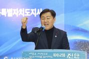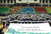 진안군이 26일 오후 진안문예체육회관에서 군민 500여 명과 주요 내빈이 참석한 가운데 ‘진안양수발전소 유치 성공기원 범군민 결의대회’를 성황리에 마무리하고, 유치 성공에 대한 강력한 의지를 대내외에 선포했다. 이날 결의대회에는 전춘성 진안군수를 비롯해 김관영 전북특별자치도지사, 안호영 국회의원, 동창옥 진안군의회 의장, 그리고 한국동서발전 권명호 사장 등이 참석하여 진안의 도약에 힘을 실었다. 먼저 성공기원공연으로 준비된 붓글씨 공연(캘리그라피)에서는 ‘새로운 시작, 100년 미래 진안양수발전소’라는 문구를 역동적인 붓놀림으로 그리며 진안의 강력한 의지를 예술적으로 승화시켜 참석자들의 큰 박수를 받았다. 이어 진행된 구동수 위원장과 신갑수 위원장의 결의문 낭독 직후 두 위원장의 선창에 맞춰 500여 군민이 하나 된 목소리로 일제히 손 피켓 펼치기 퍼포먼스가 진행돼 군민의 하나 된 힘으로 양수발전소를 진안에 유치하겠다는 결의를 다졌다. 특히, 마지막 유치 성공 다짐 퍼포먼스는 참석자들의 마음을 하나로 모았다. 군민과 주요 내빈들이 행사 시작 전 대형애드벌룬에 남긴 유치 성공 메시지를 모