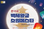 추석 전날 밤, 익산 백제왕궁이 시민들의 소망을 담은 소원등으로 환히 빛난다. 익산시는 추석 전날인 오는 10월 5일에 유네스코 세계유산 백제왕궁(왕궁리 유적)에서 '한가위 백제왕궁 소원페스타 : 천년의 소원을 담다'를 개최한다고 25일 밝혔다. 참여는 사전 예약과 현장 접수 모두 가능하다. 사전 예약은 오는 29일 오전 10시부터 마수리늘배움협회 누리집을 통해 선착순 800명을 접수하고, 현장에서도 200명을 선착순으로 모집한다. 이번 축제는 시민들이 직접 적은 소원문을 '소원등'에 달아 백제왕궁 밤하늘을 밝히며, 가족과 이웃이 함께 소망을 나누는 특별한 시간으로 꾸며진다. 소원등은 근심을 내려놓고 평안과 희망을 기원하는 상징으로 달맞이, 연등 문화 등의 풍속과 맞닿아 있다. 이에 가족의 안녕을 기원하고 풍요에 감사하는 추석의 의미를 한층 깊게 할 것으로 기대를 모은다. 행사는 오후 5시 소원문 쓰기로 시작된다. 이어 △백제의 마술사 공연 △버블쇼 △사물놀이패와 어우러지는 백제왕궁마을장터 재담마당극 등 다채로운 무대가 마련돼 시민들의 흥을 돋운다.