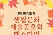 남원시가 후원하는 2025 남원시 생활문화예술동호회 페스티벌이 9월 28일에 남원 사랑의 광장에서 개최한다. 이 행사는 (사)남원시 생활문화예술동호회 네트워크에서 주관하는 축제로, 지역 예술인 및 생활 문화예술 동호인 500여 명과 남원 시민이 함께하는 남원의 생활 문화예술 축제이다. 오후 1시부터 오후 6시까지 남원 사랑의 광장 일원에서 진행되는 이번 축제는 18개 동호회의 음악·무용·농악 등 다양한 무대 공연이 펼쳐지고, 나만의 예술적 감각을 담은 생활용품을 제작해 볼 수 있는 전시 및 체험 부스가 마련됐다. 이기영 생활문화예술동호회 네트워크 이사장은 “이번 축제를 통해 남원 시민들이 함께 즐길 수 있는 다양한 프로그램이 마련됐다.”라며, “앞으로의 활동으로 시민 여러분이 즐거운 문화예술 활동에 참여할 수 있도록 노력하겠다.”라고 밝혔다. 최경식 남원시장은 “이번 행사를 통해 생활 문화예술인의 자긍심을 높이고, 시민 여러분이 생활 문화예술을 접할 수 있는 장이 될 것이다.”라며, “시민의 화합과 생활 문화예술 발전의 계기가 될 것이다.”라고 말했다.