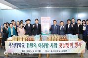 완주군이 우석대학교 교양관에서 ‘천 원의 아침밥’ 사업 하반기 첫날 맞이 행사를 개최하고 본격적인 사업 추진에 나섰다. 22일 완주군은 우석대학교 교양관에서 천 원의 아침밥 사업 하반기 첫날 맞이 행사를 가졌다. 이날 행사에는 유희태 완주군수와 박노준 우석대 총장, 김정은 사회적협동조합 양지뜰 대표 등이 참여해 바쁜 학업과 생활로 아침식사를 거르는 대학생들에게 로컬푸드 식재료를 활용한 아침식사를 직접 전달하고, 격려의 메시지를 전달했다. 이번 행사는 하반기 사업의 성공적인 추진을 다짐하고, 학생들의 다양한 의견 청취와 함께 사업의 내실화를 기하기 위해 마련됐다. 학생들에게 제공될 메뉴는 상반기 추진된 만족도 조사를 반영해 지역산 쌀을 활용한 덮밥을 다양화하고, 과일 등 영양가가 높고 건강한 간편식 식단으로 구성한다. 특히, 직매장을 운영 중인 완주로컬푸드 협동조합에서는 판매되지 않은 신선한 농산물을 기부하고자 하는 농가를 적극 발굴 연계해, 사업에 힘을 보탤 계획이다. 완주군은 상반기 동안 진행된 사업을 도 먹거리통합지원센터와 함께 지속적으로 모니터링해 하반기에도 도시락의