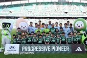 정성주 김제시장이 전북현대와 손잡고 ‘김제파트너데이’를 통해 지평선축제와 김제쌀을 홍보했다. 22일 김제시에 따르면 지난 20일 오후 4시 30분 전주월드컵경기장에서 김천상무와 전북현대 30라운드 경기에 참가해 ‘김제파트너데이’를 진행했다. 시는 이날 홍보부스를 마련해 오는 10월 8일부터 12일까지 진행되는 ‘김제지평선축제’를 알리고 이와 함께 ‘김제지평선쌀’, ‘쌀 마스크팩’, ‘지평선축제 체험권’ 등을 팬들에게 선물했다. 홍보부스에서 김제지평선축제 SNS(유튜브, 인스타그램) 구독 이벤트와 김제시 SNS 구독이벤트, 고향사랑기부로 이날 경기를 찾은 2만여 관중들에게 호응을 얻었다. 특히, 이날 시는 20kg 쌀 20포를 전북현대 선수단에 기부했으며 전북현대는 기증받은 쌀 20포를 김제 지역 노인의료복지시설(4곳)에 다시 기증했다. 정 시장은 “우승을 향해 달려가는 전북현대가 김제시와 함께 김제파트너데이를 진행하게돼 김제에서 열리는 김제지평선축제 역시 전북도민과 전국민에게 사랑을 받는 축제가 될 것으로 기대된다”면서 “특히, 김제지평선축제가 추석시기에 진행되는 만큼 많은 관광객과 도
