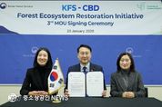 산림청은 생물다양성협약(CBD) 사무국과 ‘산림생태계복원 이니셔티브(FERI)’ 사업 양해각서를 체결했다고 23일 밝혔다. FERI는 2014년 평창에서 개최된 제12차 생물다양성협약 당사국총회(COP12)를 계기로, 산림청과 CBD가 공동으로 출범시킨 협력사업이다. FERI는 개발도상국이 스스로 산림을 복원할 수 있는 기술적·정책적 역량을 갖추도록 돕는 데 중점을 둔다. 이를 통해 ‘쿤밍-몬트리올 생물다양성 프레임워크(KM-GBF)’와 같은 전 지구적 생물다양성 목표 달성에 기여하고 있다. FERI는 지난 10여 년간 개도국의 산림복원 역량을 강화하기 위해 현장 복원사업, 역량강화 워크숍, 온라인 공개강좌 개설, 복원 의사결정 지원도구 개발 등을 추진해 왔으며, 그간의 성과를 바탕으로 양측은 개도국의 산림보호지역 지정 관련 연구와 종자 보전 등 산림 생물다양성까지 사업 범위를 확대하기로 했다. 아스트리드 슈마커(Astrid Schomaker) 생물다양성협약 사무총장은 “이번 양해각서 체결을 통한 대한민국의 지원은 전 세계 산림 및 생태계의 생물다양성 손실을 막고 증진하려는 국제적인 노력에 큰 힘이 될 것이다.