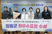 장흥군은 전라남도 주관 ‘2025년 식품·공중위생업무 종합평가’에서 ‘최우수기관’으로 선정됐다. 이번 수상으로 식품·공중위생분야에서 장흥군보건소 위생부서 설립 이래 최초로 최우수기관상을 수상하는 영예를 안았으며, 그 동안 업무를 내실있게 추진해 온 것으로 평가된다. ‘식품·공중위생업무 종합평가’는 전남도가 22개 시군을 대상으로 유통식품 안전성 확보, 식품위생업소 관리, 식중독 예방관리 사업, 공중위생업소 관리, 담당자 역량강화 5개 분야, 21개 정량 지표로 평가를 실시했다. 장흥군은 관내 식품제조업소 및 음식점, 공중위생업소에 대해 위생 지도점검을 강화하고, 소비자식품위생감시원의 효율적 운영을 통해 안전한 식품의 제조·유통기반 조성과 위생업소 위생수준 향상을 위해 노력해왔다. 특히, 소규모 식품제조가공업자를 위한 공유주방영업 등록을 통해 창업 부담을 줄이고 효율성을 높이는 기관 간 협업 정책 추진, 위생업소 친절서비스 개선 및 식중독 등 예방 컨설팅으로 위해사고 사전 차단 등 타 시군과 차별화된 사업 추진에 대해 높은 평가를 받았다. 장흥군 관계자는 “앞으로도 안전한 먹거리 환경조성