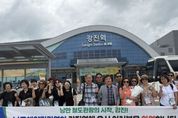 강진역 개통 후 처음으로 강진을 찾은 부산 관광객들을 환영하는 행사가 열렸다. 강진군문화관광재단(대표이사 김기태)은 목포보성선 강진역을 통해 처음으로 방문한 부산지역 여행업 종사자 및 철도 우수고객 20여명에 대한 환영식을 지난달 27일 개최했다. 이날 강진역에서 열린 환영식에 이어 철도 여행을 중심으로 사의재 등 강진 주요 관광지 탐방, 공연 관람, 지역 음식 체험 등을 연계한 복합문화 프로그램으로 진행됐다. 이를 통해 강진만이 지닌 풍부한 자연경관과 역사·문화 자원을 효과적으로 소개하며, 강진 관광 브랜드의 매력을 널리 알리는 계기를 마련했다. 특히, 강진 고유의 콘텐츠 ‘장사의 법칙’ 창작 뮤지컬을 관람, 참가자들에게 색다른 즐거움을 선사하고 철도를 통한 강진 관광의 방법을 제시했다. 부산에서 온 이광순 씨(75)는 남도해양관광열차의 첫 강진 방문을 기념해 환영 꽃다발을 받은 뒤 “목포~보성선을 이용해 강진을 여행할 수 있어 뜻 깊었고, 강진의 매력에 빠질 수 있는 다양한 문화관광프로그램을 제공해 준 강진군문화관광재단에 깊이 감사드린다”고 말했다. 이어 ”앞으로 자주 기차 강진 여