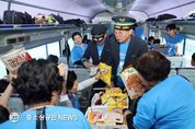 장흥군은 24일 운행된‘정남진 장흥 통일열차’에서 추억의 기차 콘셉트의 프로그램을 운영해 참가자들에게 특별한 추억을 선사했다고 밝혔다. 이번 프로그램은 철원 평화안보 현장을 견학하기 위한 통일열차 속, 기차 안에서 함께 소통하고 즐기는 특별한 시간을 위해 마련됐다. 열차 내에서는 과거 무궁화호의 카트 서비스를 재현한 간식 판매 이벤트가 진행됐다. 김성 장흥군수와 김재승 군의장이 옛날 역무원 복장을 하고 객차 사이를 오가며 탄산음료, 오징어, 땅콩 등 추억의 간식을 직접 판매해 참가자들의 호응을 받았다. 또한 객차 내 방송 시스템을 활용해 역무원 안내 방송을 패러디한 재치 있는 멘트를 선보이며 열차 분위기를 한층 더 밝게 만들었다. “잠시 후 등장하는 간식 카트는 여러분의 추억과 함께 달리고 있습니다. 통일로 향하는 열차에 탑승하신 것을 환영합니다” 등 유쾌한 멘트가 흘러나올 때마다 객차마다 웃음과 박수가 터져 나왔다. 한 참가자는 “철원으로 가는 길이 정말 즐거웠다. 진짜 옛날 기차를 타고 있는 기분이었다”며 소감을 전했다. 특히 이번 프로그램을 통해 판매된 간