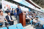 도성훈 인천광역시교육감은 6일 인천축구전용경기장에서 새얼문화재단과 공동으로 주최한 ‘제40회 새얼백일장’에 참석했다. 이번 대회는 인천시교육청이 추진하는 ‘읽걷쓰 3대 축제’ 중 하나로, 세대를 아우르는 시민 글쓰기 축제로 자리매김하고 있다. 올해 백일장에도 도서 지역 어린이들부터 만학 어르신까지 7천여 명이 참가해 시·산문·동시 등 다양한 부문에서 자기 생각을 글로 풀어내며, 세대 간 소통과 공감을 나눴다. 도성훈 교육감은 “새얼백일장이 마흔 번째를 맞아 매우 뜻깊다”며 “우리 인천 시민 모두가 40년의 세월을 읽고, 걷고, 쓰며 함께 달려온 의미 있는 날”이라고 강조했다. 이어 “이제 인천은 떠나가는 도시에서 찾아오는 도시로 성장했고, 아이 키우기 좋은 도시, 자랑스러운 도시로 변화하고 있다”며 “도서 지역 어린이들부터 만학도 어르신까지 함께하는 이번 백일장이 그 변화를 보여주는 상징적인 자리”라고 말했다. 또한 도 교육감은 “앞으로 인천은 기회의 도시를 넘어 새로운 주도성을 가진 인문학 도시로 성장할 것이며, 이 백일장을 통해 아이들이 즐겁게 쓰고 행복하게 글을 남기며 좋은 추억을