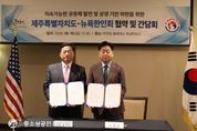 제주특별자치도가 미국 동부 50만 한인을 대표하는 뉴욕한인회와 손잡고 경제·관광·문화·교육 분야 글로벌 협력 네트워크를 본격 가동한다. 제주도는 19일 오후 4시(현지시간) 미국 워싱턴DC 소재 하얏트 플레이스 호텔에서 뉴욕한인회와 상생 교류발전 업무협약을 체결했다. 뉴욕한인회는 뉴욕 대도시권과 뉴저지, 코네티컷 일부 지역 약 50만 한인을 대표하는 비영리단체로 한인 권익보호와 문화·경제·교육·복지사업, 이민자 지원 등을 담당한다. 제주도가 미주지역 한인회와 협약을 맺은 것은 지난해 10월 미주한인회총연합회에 이어 두 번째다. 협약식에는 오영훈 지사와 이명석 뉴욕한인회장을 비롯한 양측 관계자 20여 명이 참석해 다양한 분야에 대한 구체적인 협력방안을 논의했다. 주요 내용은 △제주형 휴가지 원격근무(워케이션)·배움여행(런케이션) 프로그램 홍보 및 참여 촉진 △관광·지역경제 활성화를 위한 네트워크 협력 사업 △협약기관 간 지속가능한 공동체 발전 및 상생 기반 마련 등이다. 오영훈 지사는 “뉴욕한인회와의 업무협약은 한인사회 발전과 고국 연결을 강화하는 계기”라며 “제주의 미래와